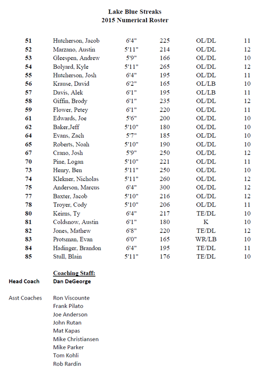 2015 - Lake Blue Streaks vs. North Canton Hoover Vikings